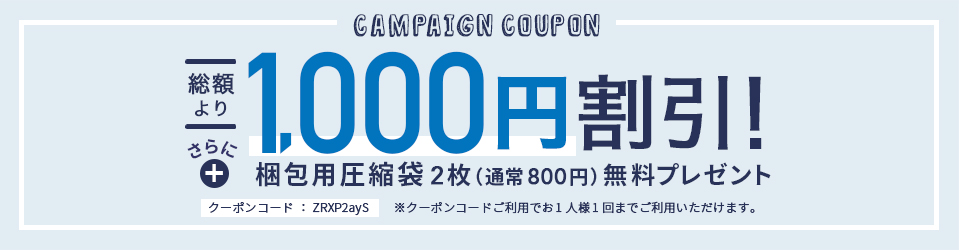時期によっては、梱包用圧縮袋を無料サービスしてくれるクーポンもあります!