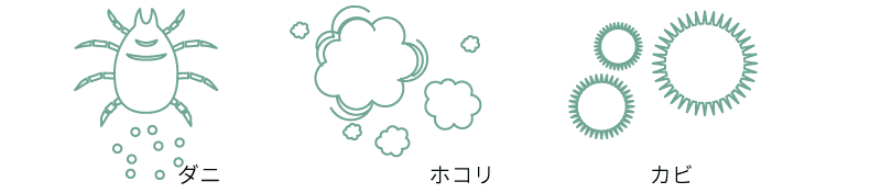 ・ダニの糞や死骸、汗、尿などの水溶性の汚れをしっかり清潔に!